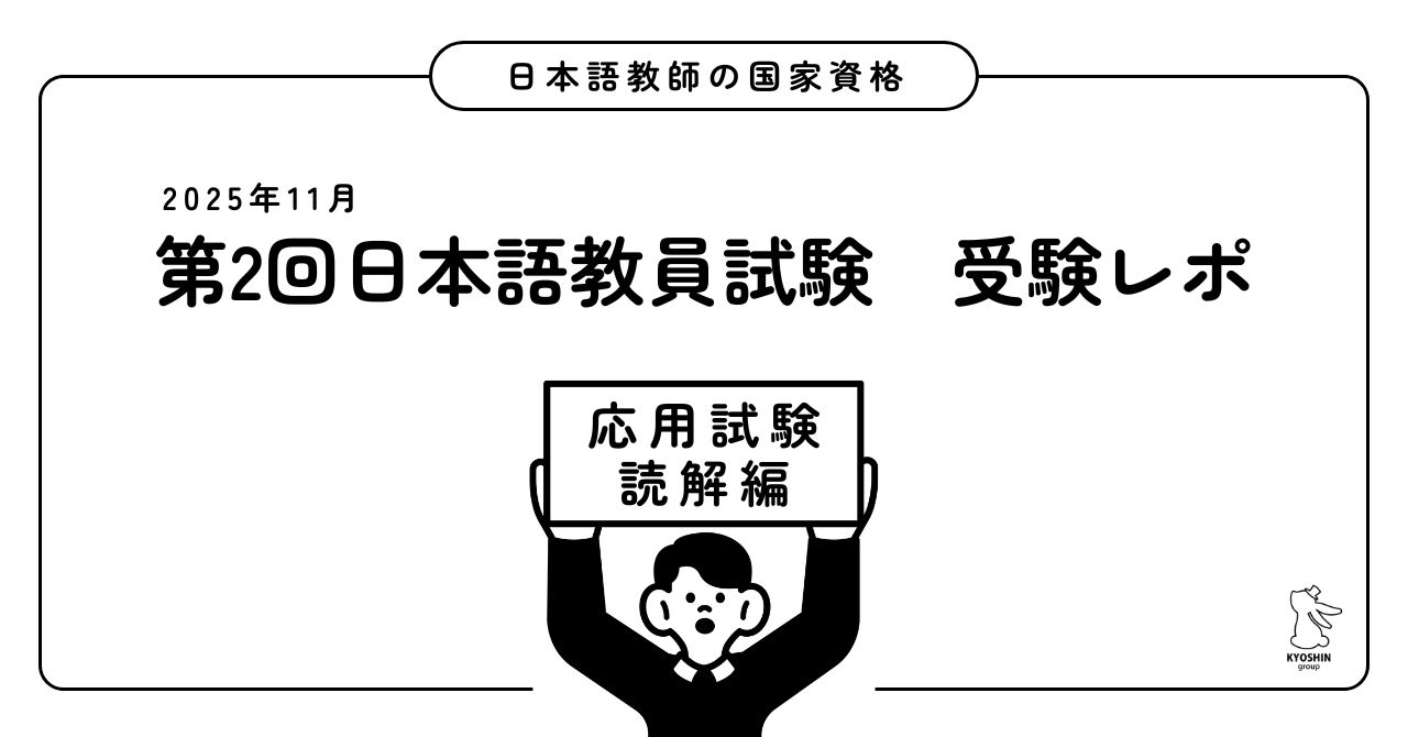 2025年11月2日に行われた「第2回日本語教員試験」を養成講座講師が朝の基礎試験から応用試験まで1日かけて受けてきました。今回は受験レポシリーズの2回目、応用試験(読解)です。