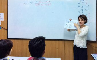 ちなみに写真は「わたしはボールペンがありません。ボールペンを借りてもいいですか」という会話をしています。学生は日本人の先生に日本語で話しかけられると、けっこう固まりますが、そこは慌てず根気よく会話します。3、4つ例文を出して意味を掴んでもらいます。この後、「わたしは寒いですから、エアコンを消してもいいですか」と聞くと、全力で「いいえ」と言われてしまいました。